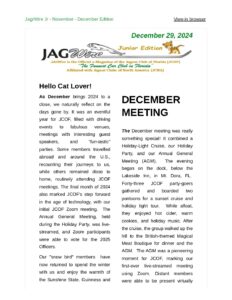 It is recommended that the JAGWire newsletter be viewed with a current version of the Adobe Acrobat Reader. Click here to download a current version if needed.